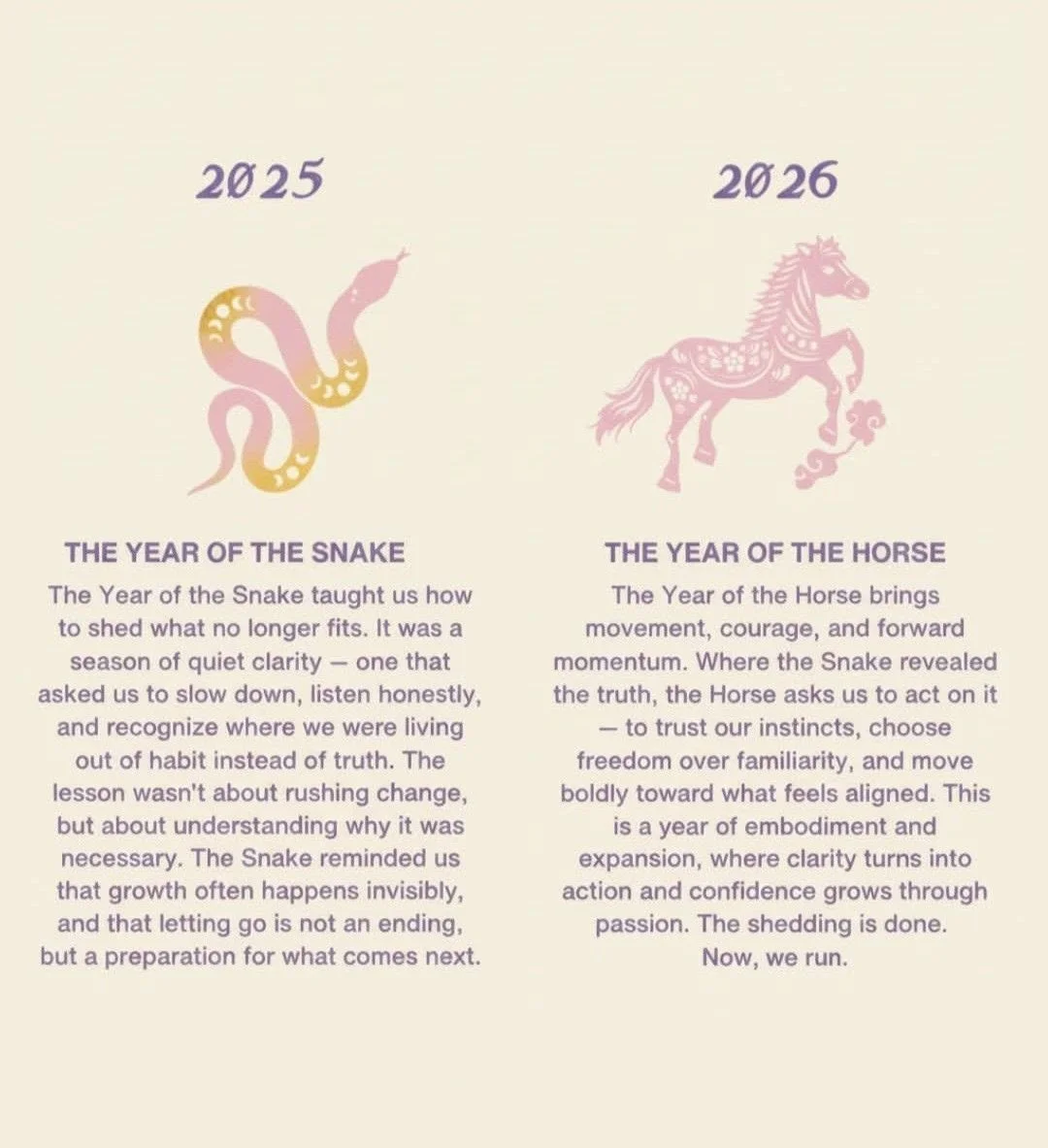 An avid horse-rider growing up, and a Sagittarius, horses have always held a special place for me (they’re my spirit animal too!), and I’m feeling ready to trot onto this new year of the Fire Horse… moving in a slightly different direction, yet guided by what feels true, right, and deeply aligned. Yeehaw !